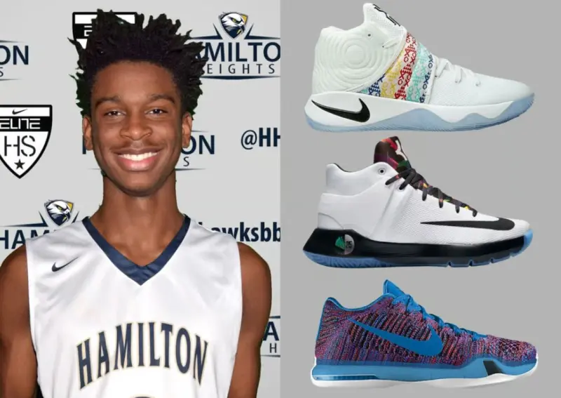 在汉密尔顿高中时期,亚历山大有过穿着记录的包括Nike Kyrie 2(右上), Nike KD Trey 5(右中)以及Nike Kobe 10(右下)。