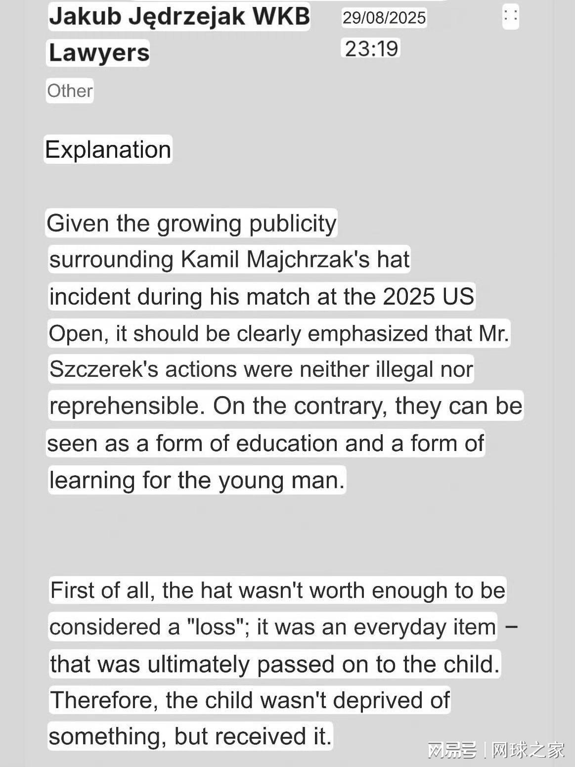 这份被律所火速否认的声明称:“暂时取走帽子再归还的行为,可以解读为一场关于珍惜馈赠之物的教育”,“让年轻人意识到,即便是帽子这样看似普通的物品,也值得被关注、负责和呵护”。