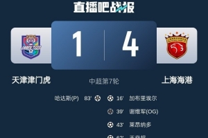 体育资讯4月16日讯 中超第7轮,天津津门虎主场1-4不敌上海海港,加强本场津门虎面对海港已经遭遇五连败。